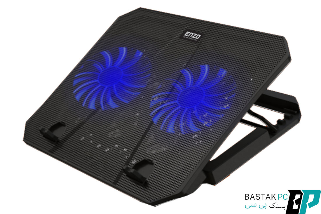 Enzo LF-221 با طراحی مینیمال و بدنهای سبک عرضه شده است تا بدون اشغال فضای زیاد، در کیف لپتاپ یا روی میز کاری جای گیرد. صفحهی رویی این پایه از فلز مشبک ساخته شده که به گردش بهتر هوا و انتقال گرما کمک میکند. دو فن مرکزی در وسط پایه قرار دارند که نور آبی LED آنها هنگام روشن بودن، ظاهر جذابتری به آن میبخشد.