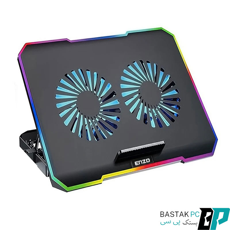 پایه خنک کننده لپ تاپ انزو مدل LF-225 با طراحی مدرن راه حلی ایده آل برای برای حفظ دمای مناسب لپ تاپ شماست. این پایه خنک کننده از جنس ترکیبی پلاستیک فشرده و آلیاژ آلومینیوم ساخته شده به طوری که قسمت های زیرین آن پلاستیکی و قسمت روی آن فلزی می باشد. این محصول دارای دو عدد فن خنک کننده 125 میلیمتری با نورپردازی LED آبی رنگ با عمکرد بسیار کم صدا بوده که با سرعت 1200 دور در دقیقه در چرخش هستند. همچنین مجهز به نورپردازی RGB متغیر با قابلیت تغییر نحوه نورپردازی در حالت های مختلف می باشد که زیبایی خاصی به میز کار شما می بخشد. این محصول مجهز به پایه تنظیم ارتفاع در چند سطح می باشد و همچنین دارای پایه نگهدارنده لپ تاپ جهت جلوگیری از سر خوردن لپ تاپ است. منبع تغذیه این پایه خنک کننده از USB می باشد که به آسانی با اتصال به یو اس بی لپ تاپ شروع به کار میکند. همچنین یک درگاه یو اس بی اضافی جهت اتصال انواع دستگاه ها همچون فلش مموری، ماوس، کیبورد و سایر دستگاه ها را دارد. این پایه خنک کننده مجهز به محفظه نگهدارنده گوشی موبایل نیز بود که با قرار دادن گوشی موبایل خود در آن در حین کار دسترسی راحت تری خواهید داشت. این پایه خنک کننده برای لپ تاپ هایی تا حداکثر سایز 17 اینچ مناسب است.